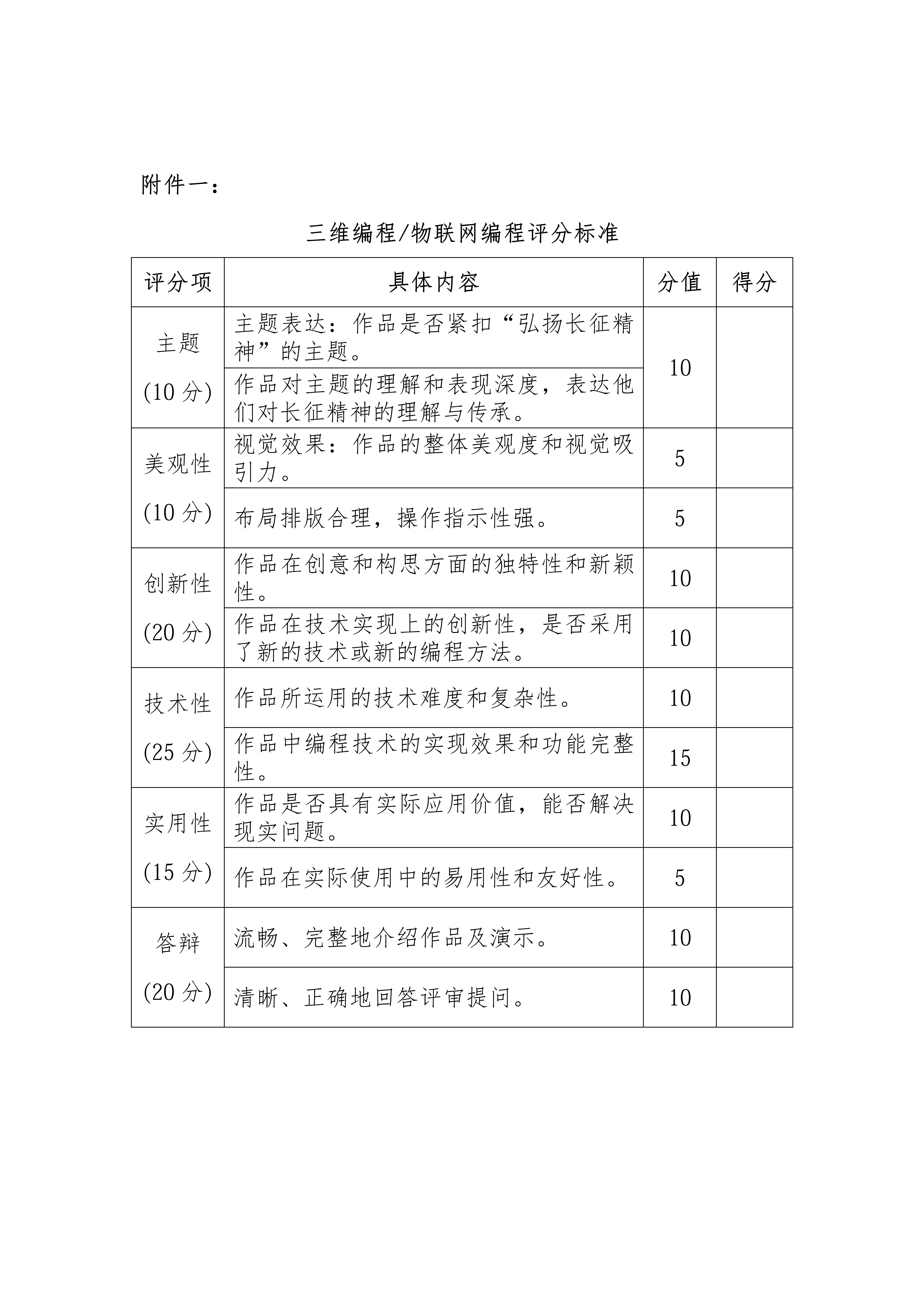 分,按比例评选出进入展示的作品。评分标准见附件一。